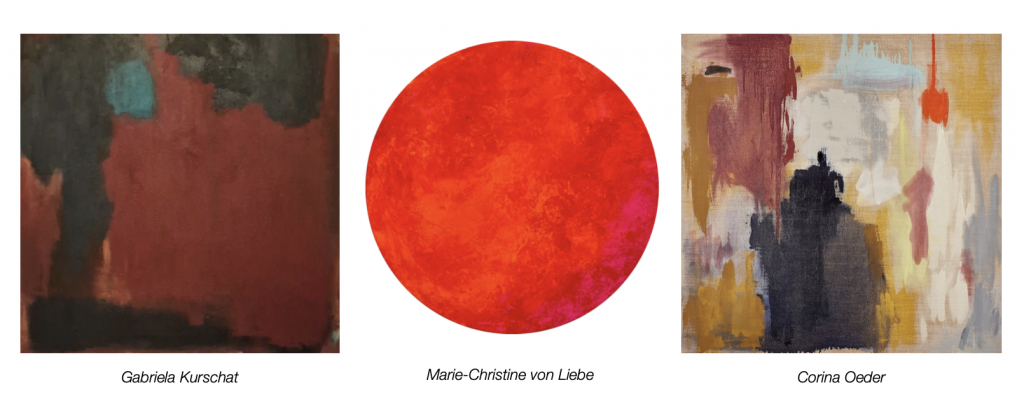 Die Künstlerinnen sind die Österreicherin Gabriela Kurschat, die Schwabingerin Marie-Christine von Liebe und die Münchnerin Corina Oeder. Alle drei beschäftigen sich intensiv mit den Möglichkeiten einer Malerei aus der reinen Farbe, oftmals auf Basis des reinen Pigmentmaterials. Ihr Arbeiten lehnen sich an die Tradition des Abstrakten Expressionismus an und die Farbmalerei wie Jerry Zeniuk und Ingrid Floss sie propagieren.