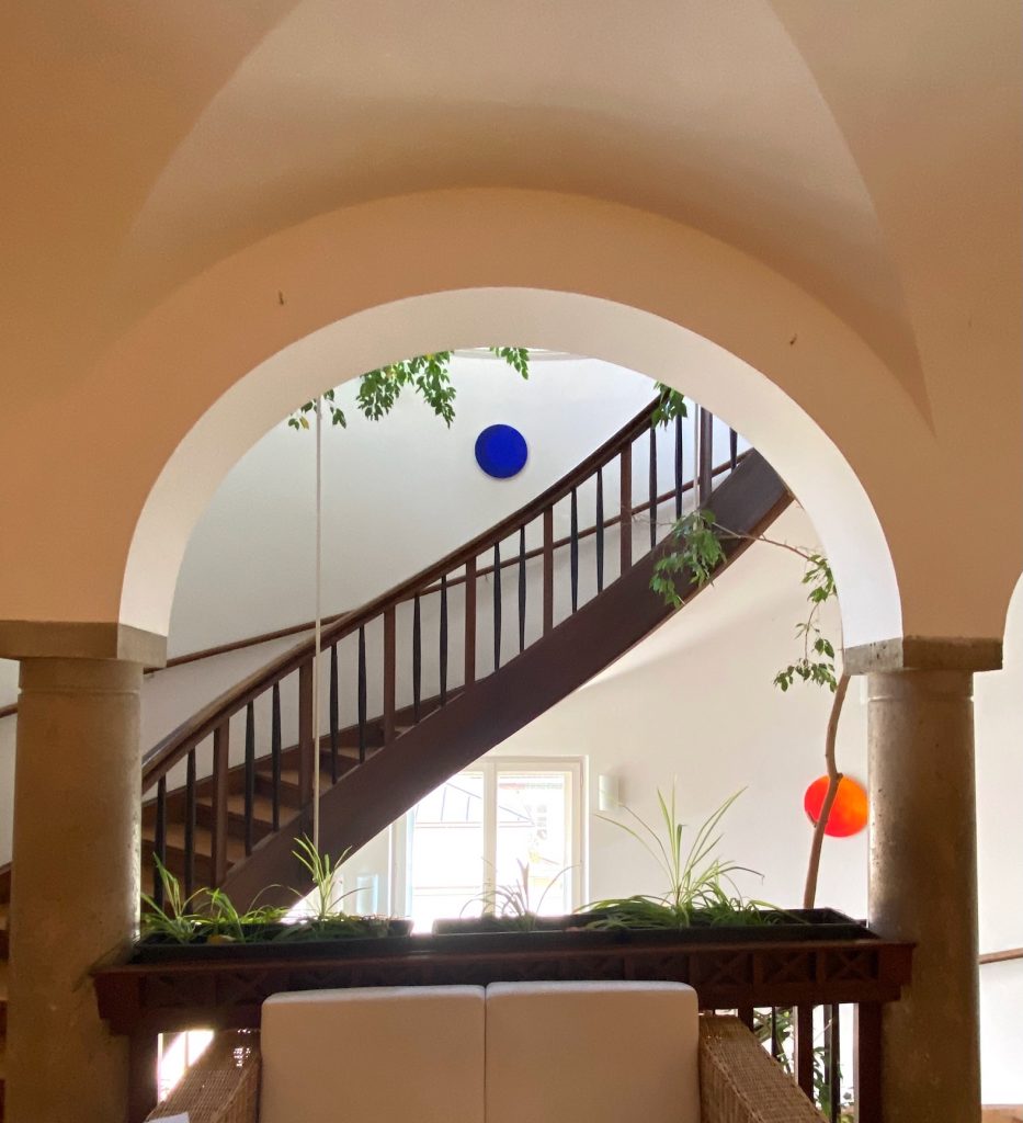 Durch die Räume der Villa konnten die Besucher einer Art buntem Faden folgen. In jedem Raum war es ein etwas anderer Dialog, dem man nachspüren konnte. Mal ging es um das Licht und die Dunkelheit, mal war es sehr modern im Kontrast zu ursprünglich-archaisch. Dann waren es bestimmte Farbigkeiten, die miteinander in Dialog gegangen sind, mal haben die Betrachter sich selbst ihre Dialoge zusammengestellt.